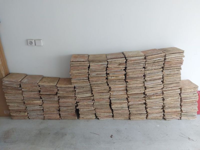 Tomettes anciennes 500m2 de dimensions 21x21et 22x22 prix 70€ le m2 nous avons aussi en stock d’autres dimensions. Livraison possible, mais à venir voir sur place avant.